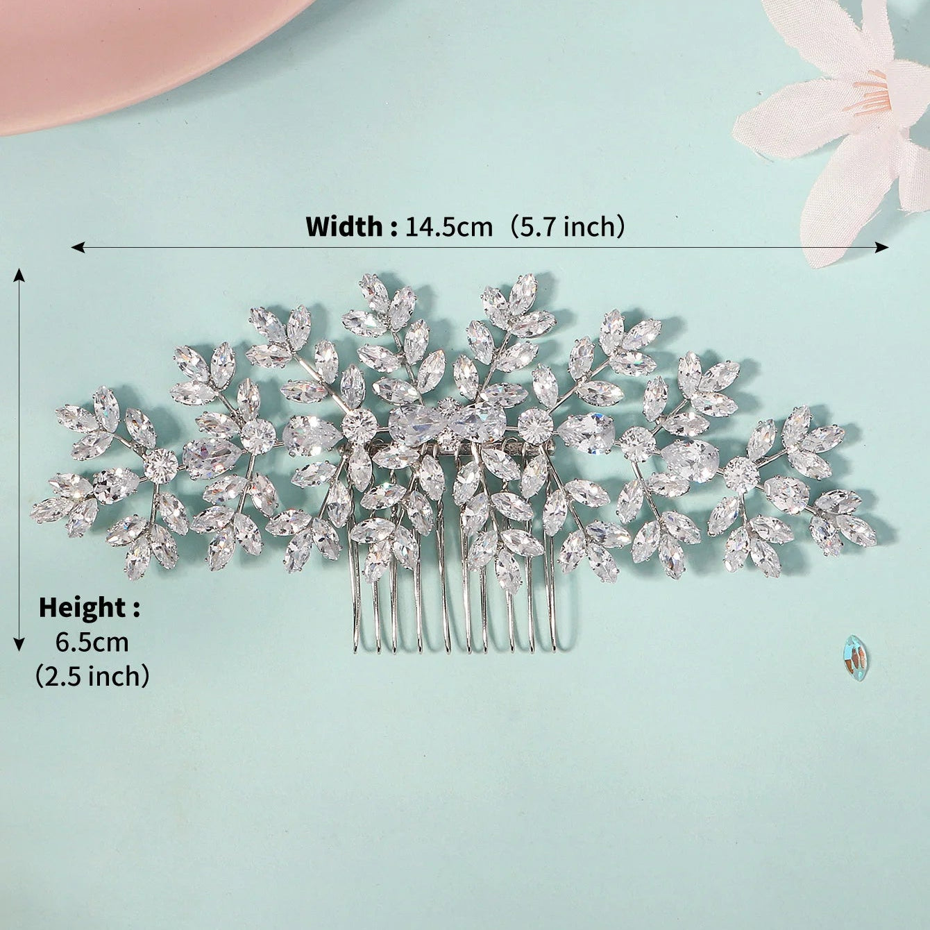 Ce grand peigne à cheveux pour chignon de mariage est conçu pour celles qui recherchent un accessoire à la fois lumineux et structurant. Sa largeur généreuse permet d’habiller un chignon avec élégance et équilibre.