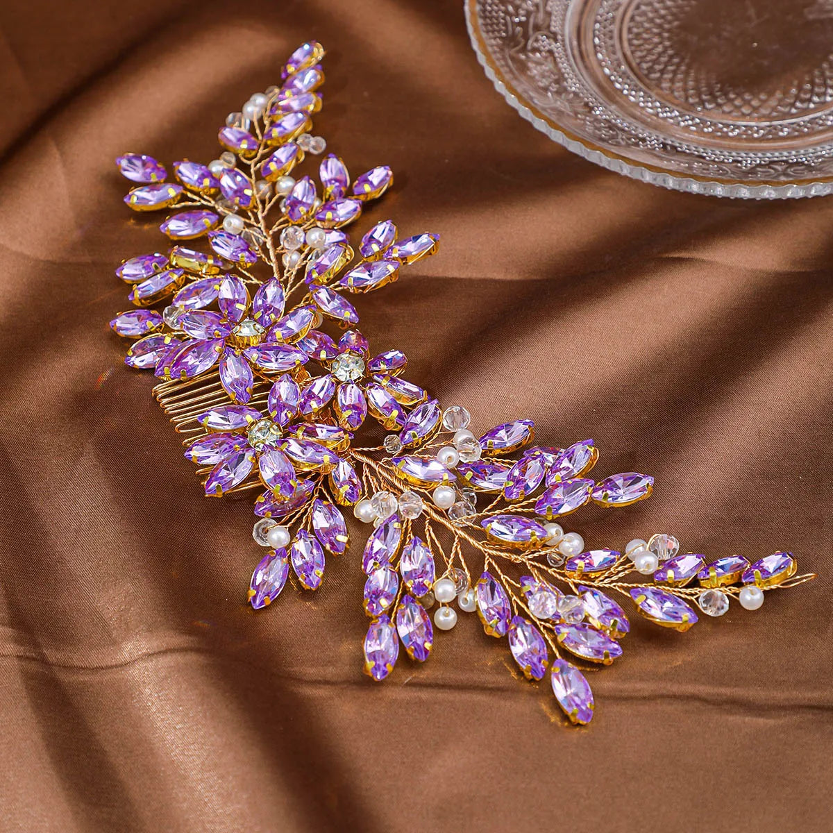 Son motif travaillé, composé de cristaux scintillants et de détails floraux harmonieux, capte la lumière avec subtilité. Idéal pour une mariée, une demoiselle d’honneur ou une invitée à une cérémonie, ce peigne transforme instantanément votre coiffure en création élégante.