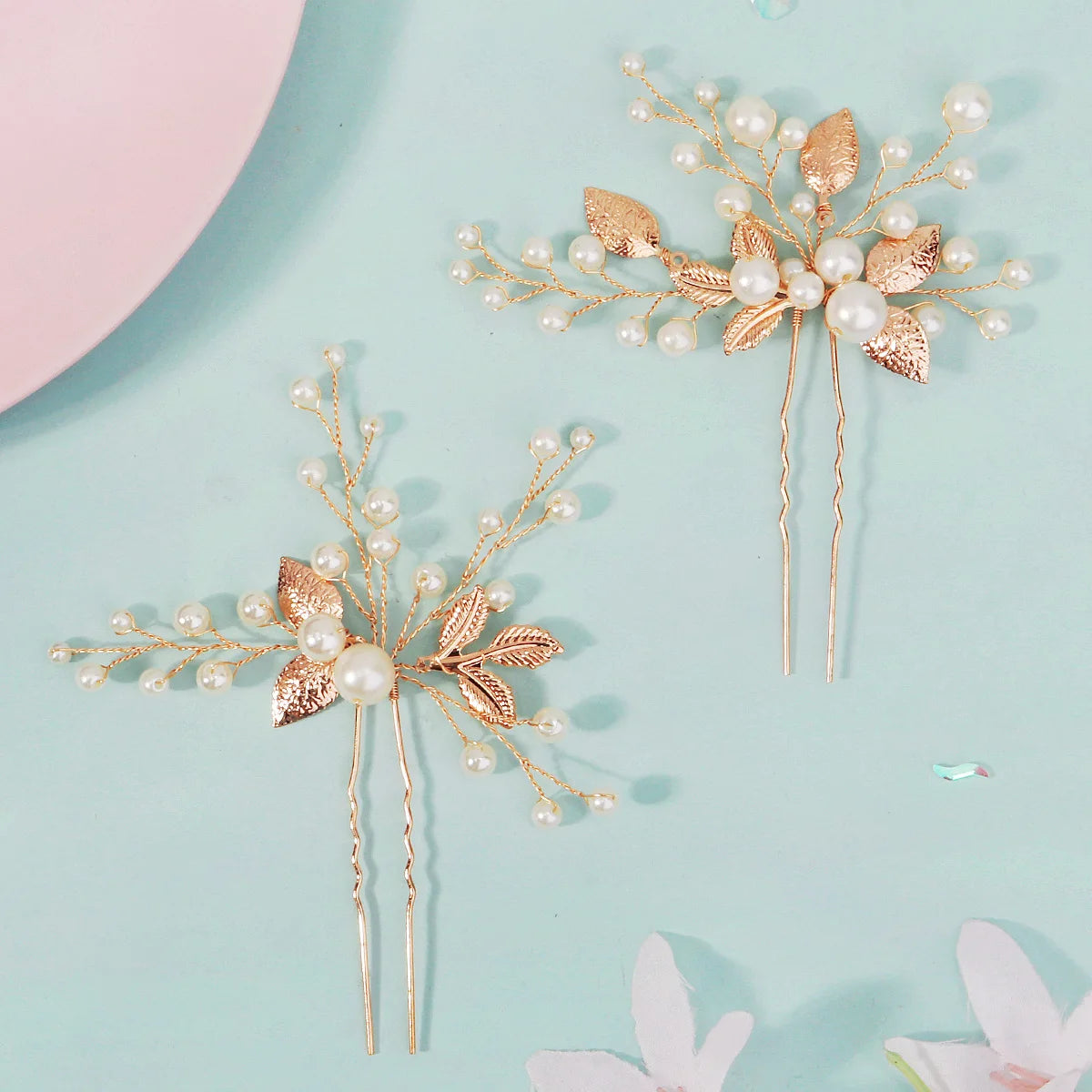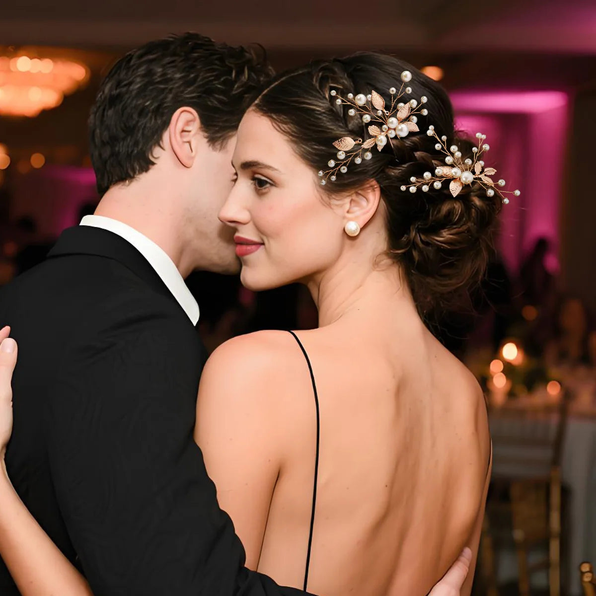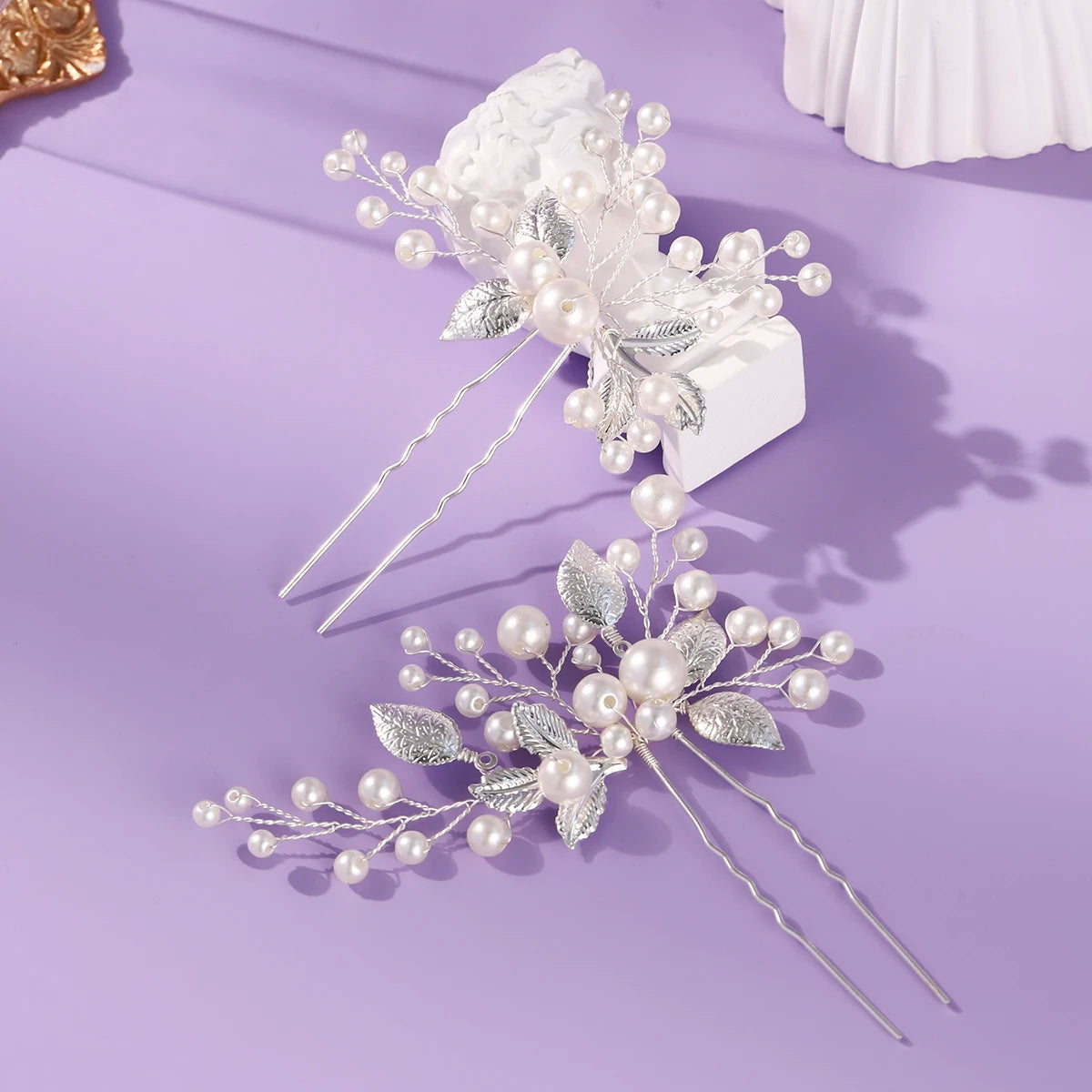 Cette épingle cheveux mariage convient aussi bien à une robe classique qu’à une silhouette bohème ou minimaliste. Les perles blanches captent la lumière avec subtilité tandis que les fleurs et feuilles structurent la coiffure sans l’alourdir.