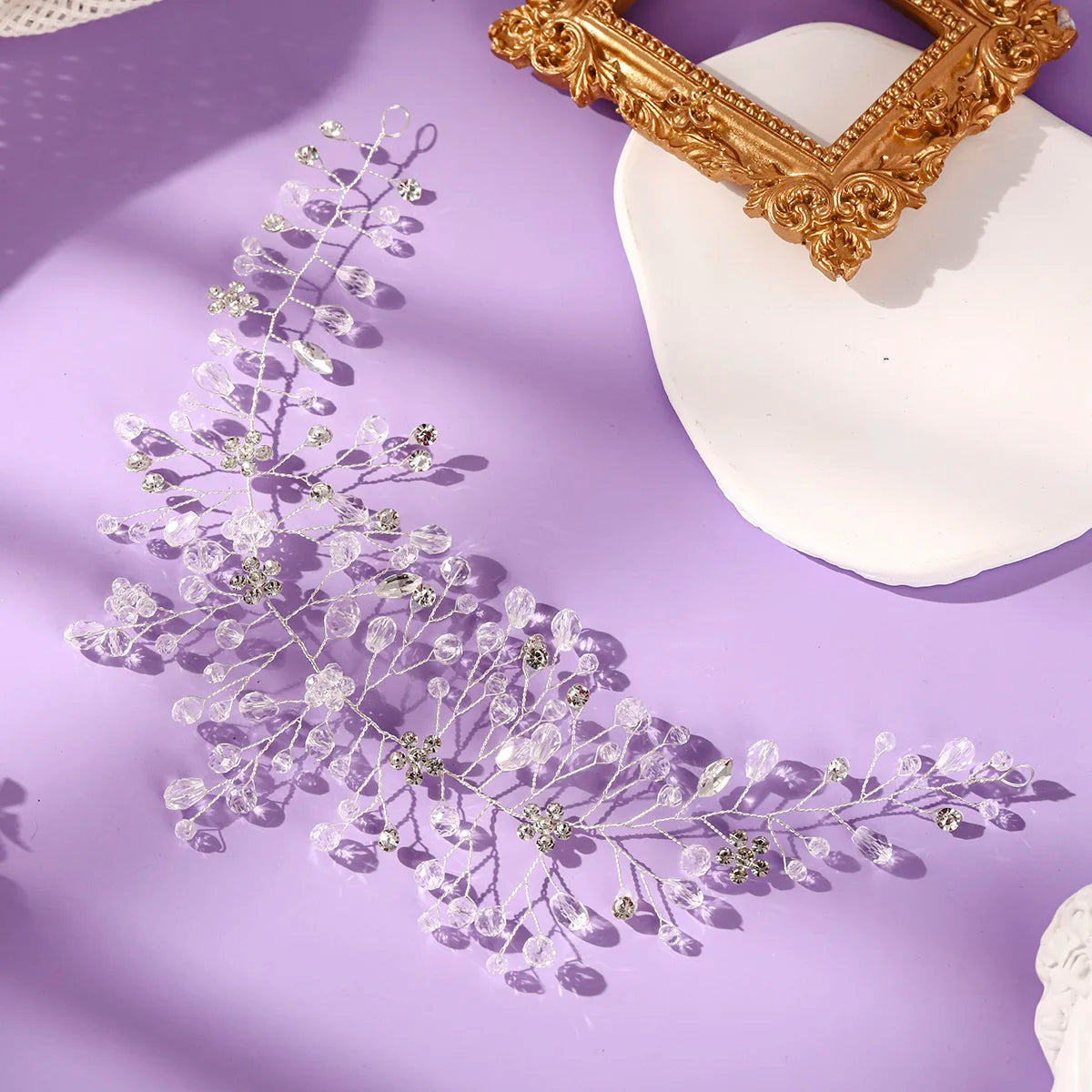 Ces épingles à cheveux chignon mariage sont conçues pour habiller élégamment un chignon bas, flou ou structuré. Leur design délicat en branches ornées de cristaux crée un effet aérien et romantique.